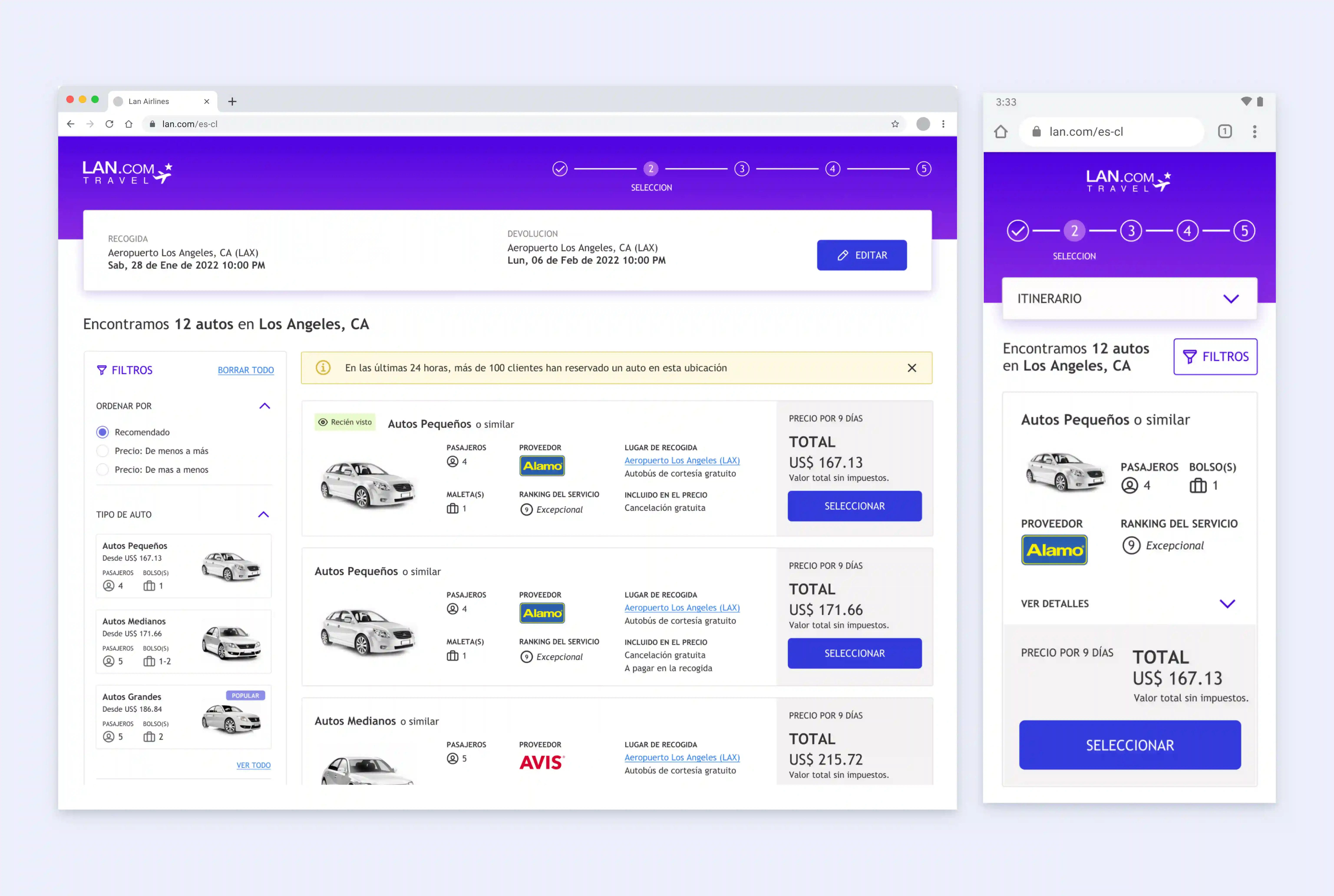 Many things have changed since I departed from Lan Airlines, starting with the name, now LATAM; The current rental platform also has changed, even though, as a former employee had the chance to work on this project was a great addition to my experience as a designer.