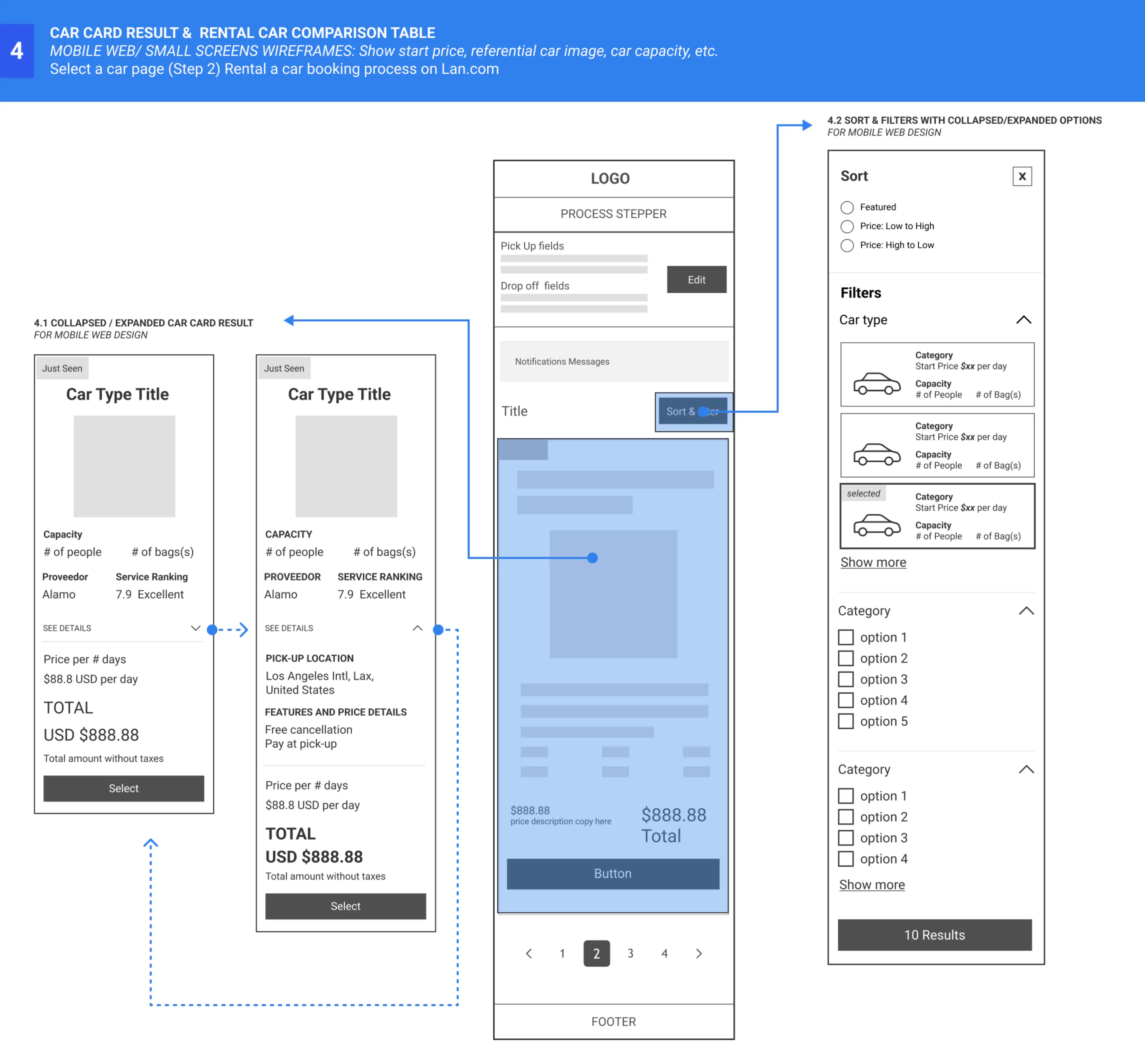 - The purpose of this page is to help Lan's users to find the car they need for their upcoming travel. And the problem I'm trying to solve is to reduce frustrations while renting a car in the booking process on Lan.com.